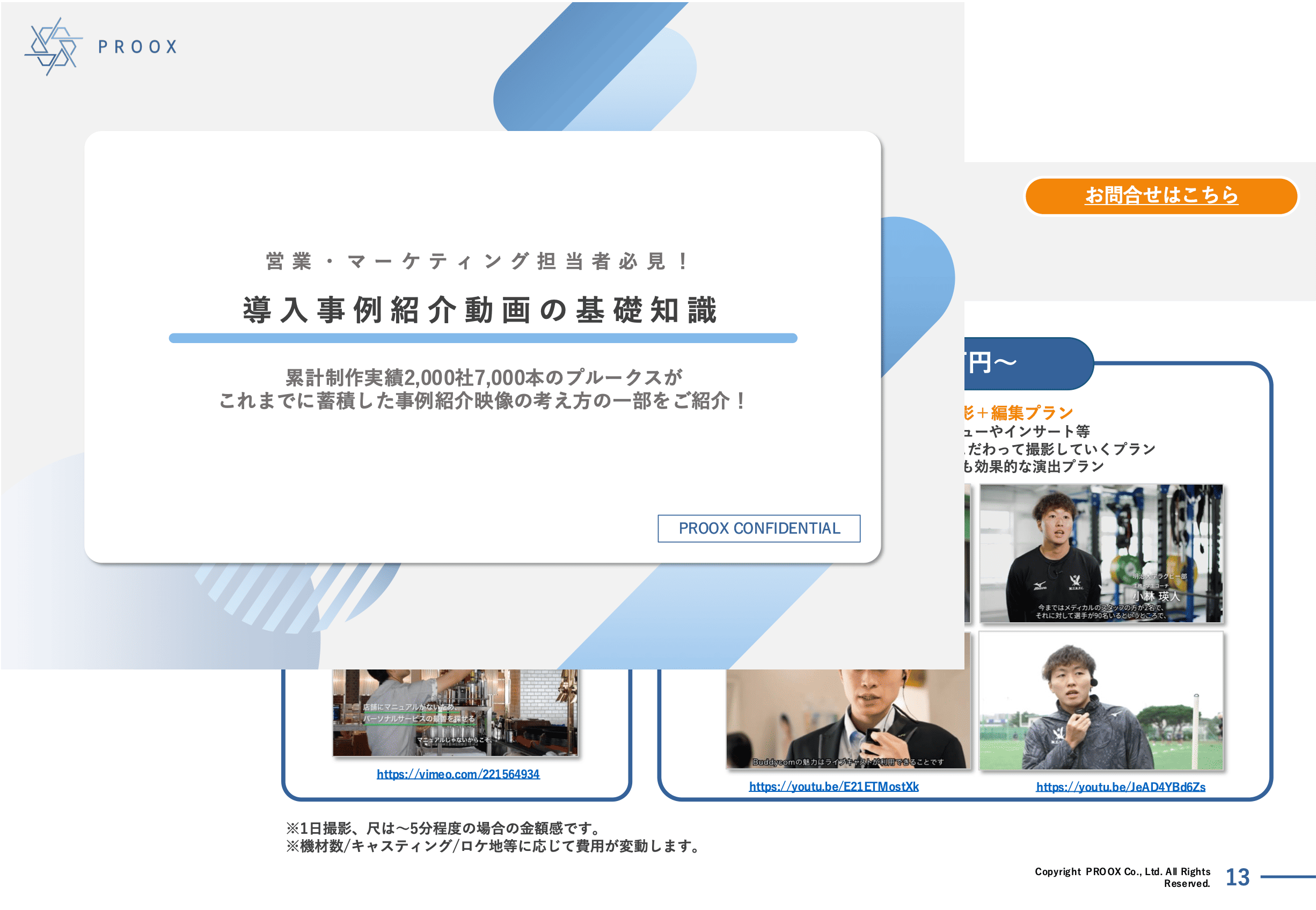 高品質な動画であれば、クライアントが社内で商品・サービスを導入するか協議する場において、判断材料として活用いただくことも可能です。